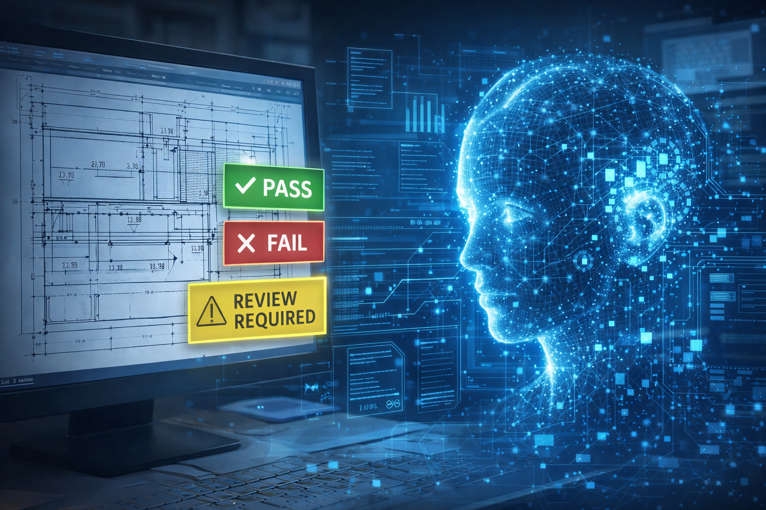 AI extracts drawing information and runs rule-based checks such as: